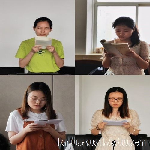 会议正式开始,首先是八位党员代表轮流发言环节。19级法律史孙智群同学谈到,我将无我、不负人民是一名学生党员的理想信念和不懈追求。19级法学理论张小雪同学认为,当代青年应当永葆敢为人先的精神,与人民为伍,不负使命、不负时代。19级国际法洪冬宜同学表示,党史学习教育进一步夯实了我们的思想根基,我们应当继续刻苦钻研、勇敢担当、不断积累实践经验。19级诉讼法宣阳同学从“我为同学做实事”谈起,表达出共产党员应当发挥模范与带头作用的决心和使命。20级诉讼法范明伟同学、20级民商法黄克农同学、20级经济法高严同学、20级知识产权法陶点同学从学习习近平总书记系列重要讲话、浅谈支部所学党史材料之感悟、剖析党史学习教育过程中的差距和不足等方面入手,表达出作为一名学生党员应当永葆初心、紧跟党走、以身作则,树立求真务实的工作作风。