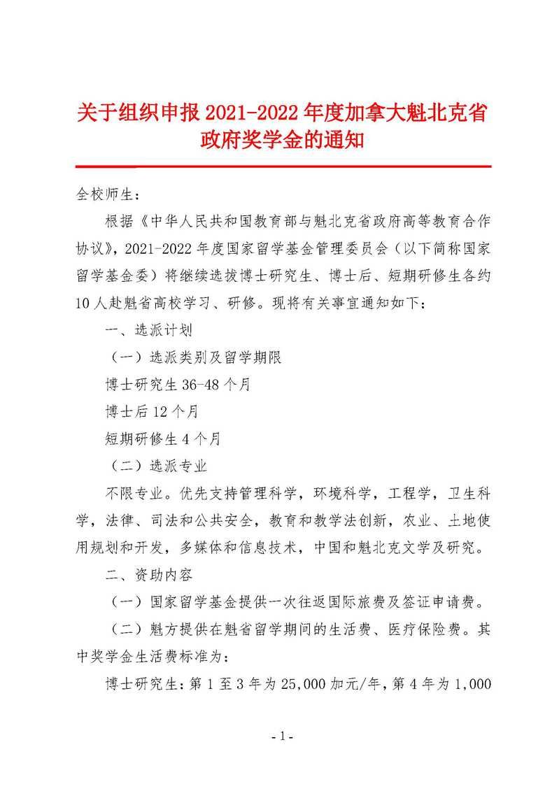 2021-2022年度加拿大魁北克省政府奖学金申报已开启。请有意申请者仔细阅读申请条件,在9月26日前登录国家留学基金委报名系统,完成网上报名,并按照相关要求准备申请材料交至法学院国际化办公室(文治楼608)。有问题请发送邮件至lawschool_zuel@163.com或拨打办公电话027-88386279咨询。