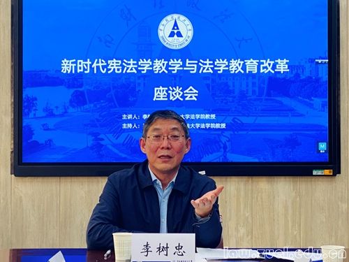 通讯员(胡楠 许园洁)2021年10月21日下午2:30,中国政法大学法学院李树忠教授与我院宪法学与行政法学系教师以“新时代宪法学教学与法学教育改革”为题座谈会在文治楼法学实验中心302会议室顺利举行。座谈会由我院王广辉教授担任主持人,我院宪法学与行政法学系胡弘弘教授、丁丽红副教授、江登琴副教授、陈新副教授、张青波副教授、付婧副教授以及部分研究生参与座谈。