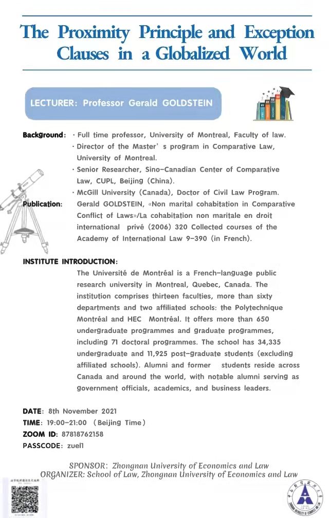 主讲人:Gerald GOLDSTEIN教授,蒙特利尔大学法学院全职教授