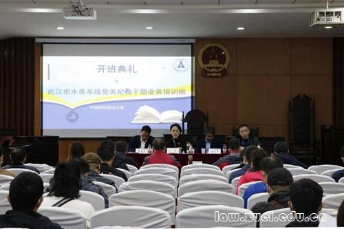 通讯员(金子欣 宋雨曦 邓森垚)为深入贯彻落实习近平法治思想,提升武汉市水务局系统党务纪检人员的政治素质、纪法专业素养和履职能力,推动党务纪检工作高质量发展,11月10日上午,武汉市水务系统党务纪检干部业务培训班开班典礼在文泰楼模拟法庭(二)举行。武汉市水务局机关党委专职副书记兼机关纪委书记刘青,武汉市水务局培训班班委代表杨晓伟,我校律师与公证学院执行院长袁中华出席本次典礼市水务局机关党委副主任科员程晚霞担任主持人。培训班全体学员到场聆听。