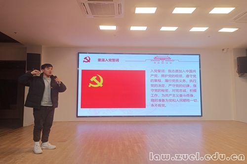 通讯员(辛妮妮)112819时,2021级诉讼法学党支部在大学生素质教育中心开展十一月主题党日活动,党员同志以及入党积极分子到场参加学习。