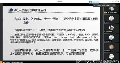 通讯员(法学院新闻中心)为加强法学院研究生党建工作,推进新学期研究生党建工作顺利开展,320日晚,法学院研究生会通过线上会议的形式,召开21级研究生党支部新学期党建工作联合会议。法学院研究生会组织部全体成员、21级研究生各党支部书记等参加会议。研究生会组织部部长白俊鹏同志主持会议。