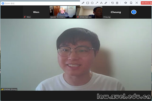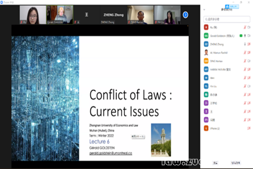 通讯员(法学院新闻中心)北京时间4月11日19时,蒙特利尔大学Gerald Goldstein教授系列讲座第六场通过ZOOM线上会议顺利举行。本次讲座由法学院国际法系丁汉韬老师担任主持人,华侨大学法学院刘音老师担任特邀嘉宾,法学院师生积极参与本次讲座。