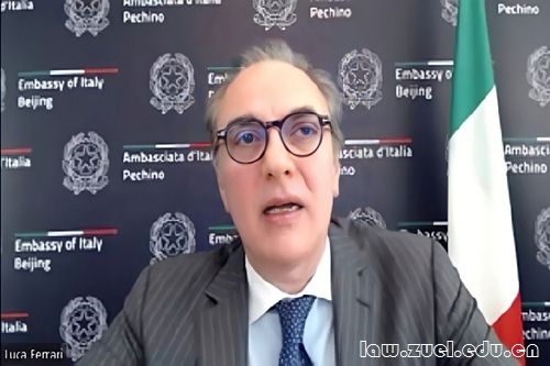 活动伊始,意大利共和国驻中华人民共和国大使方澜意先生首先对罗马第一大学的邀请表示衷心的感谢,并对与会专家学者们致以诚挚的问候。他表示,《中国民法典》的颁布及其实施充分展示了中国法治建设所取得的巨大成就,这次民法典颁布一周年的系列庆祝活动也展现了两国学术交流的丰硕成果。同时,他充分肯定了米兰电竞·(中国区)与罗马第一大学两所大学近些年在人才培养与科学研究上的合作成就,并希望两校新成立的中外合作办学机构能够为深化中意之间的交往与合作做出更多的贡献。