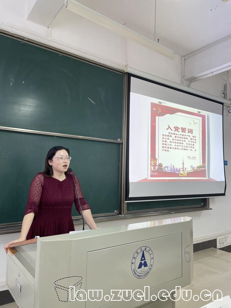 随后,由法学院研究生会组织部负责人白俊鹏同志宣读法学院研究生党总支关于接收预备党员和正式党员的决议。