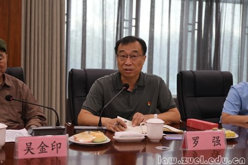 吴金印对法学院师生的到来表示热烈欢迎。他讲述了自己在农村六十多年的工作经历和心路历程,工作上始终坚持“四个同”——与老百姓同吃同住同劳动,遇到困难同商量。吴金印把群众当做亲人,和群众融为一体;把群众当成老师,有困难找群众商量;把群众当成主人,“人民的期盼就是我们奋斗的目标”。吴金印掷地有声的话语,彰显了他一片赤诚的为民情怀。