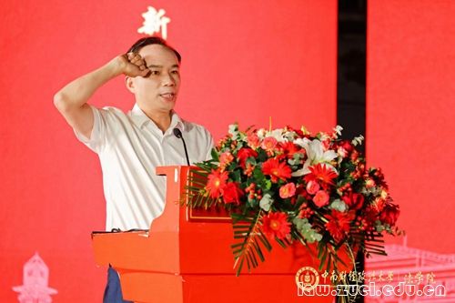 在校生代表、2020级本科生刘子嘉和新生代表、2022级硕士研究生田腕君依次上台发言。刘子嘉在发言中分享了在参加“杰赛普国际模拟法庭辩论赛”时关于“选择”与“坚持”的认知,并动情地说到:“每一次的历练都有自己的领悟和收获,大学是一场‘厚积薄发’的历练”。田腕君结合自己自强不息的奋斗经历,向同学们分享了她关于成为一个“基础扎实,思维严谨”、“以责立身,兼济天下”、“饮水思源,懂得回报”的法律人的理解与思考。