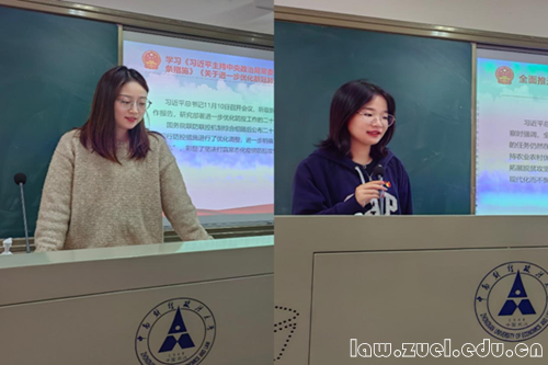 通讯员(曹丽萍 李欣)11月24日,2021级诉讼法学党支部在文添楼406教室开展“守正创新担使命 勇毅前行谱新篇”十一月主题党日活动,党员同志们到场进行学习。