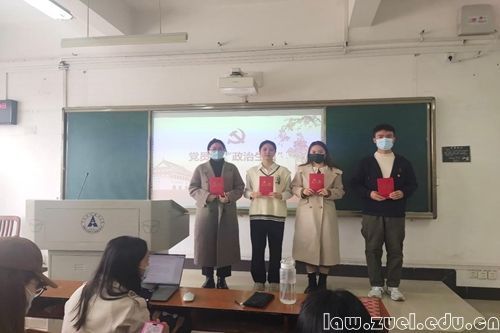 主题党日活动第一项,汇报党费收缴情况,重温入党誓词、诵读党章,党员过“政治生日”。首先由李佳琳同志向各位党员同志汇报告本月党费收缴情况,表明所有党员同志已按时交纳党费。随后,在李佳琳同志带领下,全体党员重温入党誓词,诵读新党章中的总纲部分。同时,本次党日活动还为程丽元、李逸飞、曹雨、李佳琳同志过“政治生日”,四位同志收到政治生日贺卡,并向在座的党员、发展对象和积极分子们分享了自己的入党历程,以及作为一名党员的体会感悟,希冀积极向党组织靠拢的发展对象和积极分子们能够不断学习进步,党员同志们能够不忘初心、牢记使命、踔厉奋发、砥砺前行。