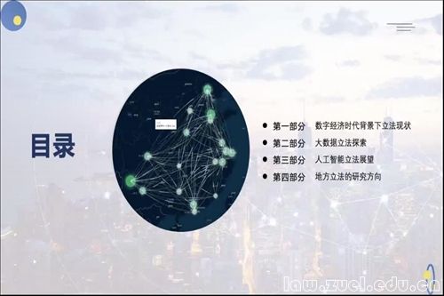 杜总经理主要从以下四个方面展开讲述:一是数字经济时代背景下的立法现状;二是大数据的立法探索;三是人工智能的立法展望;四是地方立法的研究方向。