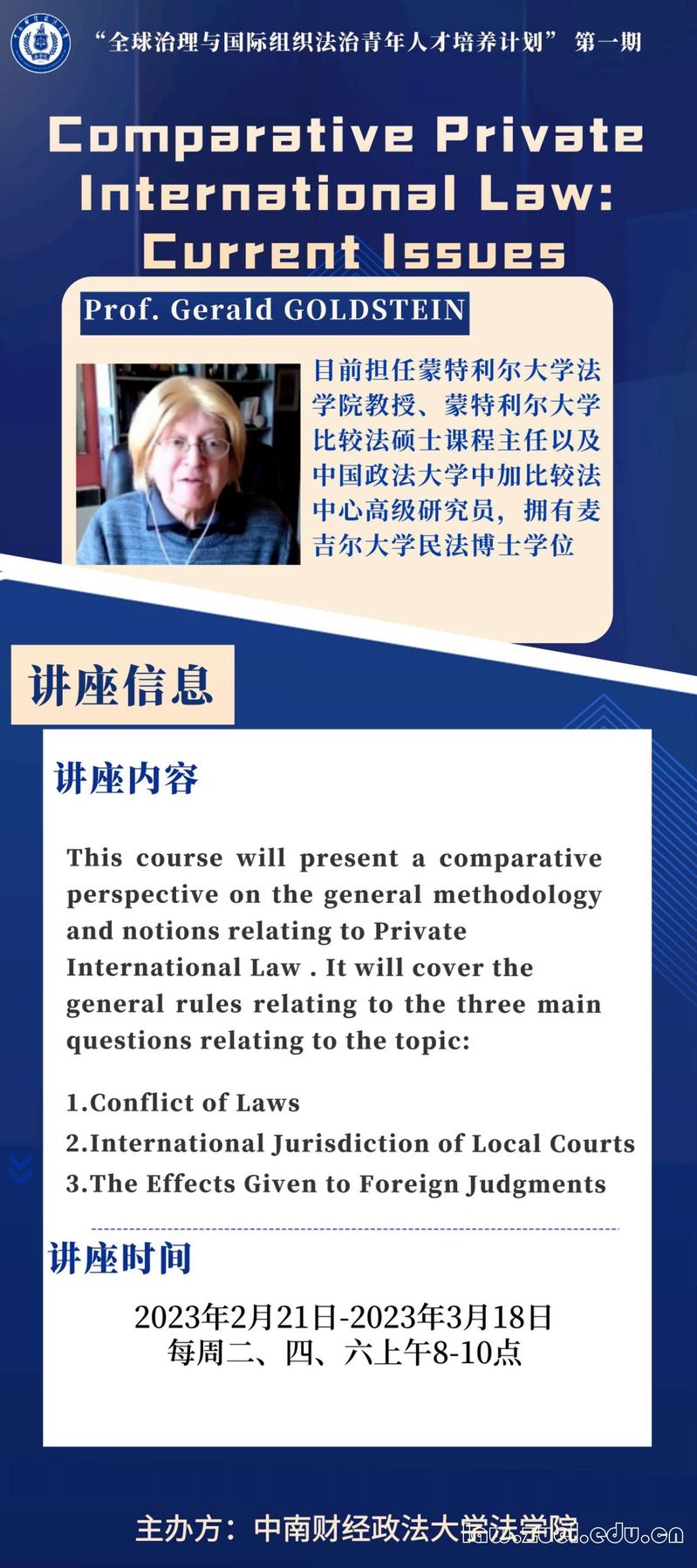【讲座预告】“全球治理与国际组织法治青年人才培养计划”第一期系列讲座:Comparative Private International Law — Current Issues