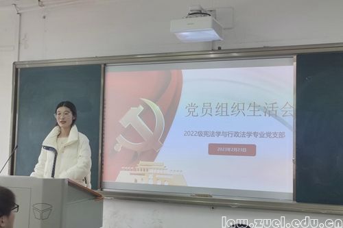 2月23日下午,2022级宪法学与行政法学研究生党支部在文添楼304召开了“坚定理想信念,凝聚奋进力量”主题党日活动暨党员组织生活会、民主评议会。党支部副书记范雯雯同志汇报了上一年度的工作总结,并进行了批评和自我批评。支部组织委员兼纪律委员李晨同志和宣传委员王梦晗同志也对上一年度工作的不足进行了总结、批评和自我批评。随后,支部各党员依次进行了批评和自我批评。韩畅同志和花福雨同志对支部建设提出了自己的认识和改进建议,张雨露同志对自身上一年度理论知识和专业知识学习上的不足进行了分析。支部其他党员也深刻进行了自我批评,并勉励自己不断提升政治素养,协调好理论学习与专业学习、日常生活的关系。