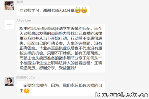 本次活动在同学们中获得了较为热烈的反响,微信群中人数达到了200人,在最终互动环节,同学们积极提问,并在活动结束后在微信群中分享自己的感受与收获,姚老师也积极回应并鼓励同学们追求理想。