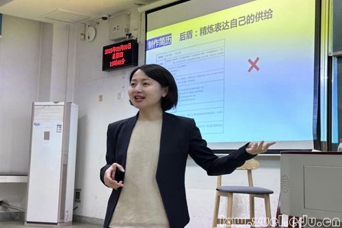 姚俊倩老师从制作简历、投递简历、笔试面试和职业规划四个板块为大家扫清求职路上的重重疑点,关于制作和投递简历,姚老师从简历的设计、内容、排版,投递的时间、格式和注意事项方面给大家强调了需要注意的细节问题。在笔试面试板块,姚老师为同学们提供了整理好的笔试面试题库,让同学们收获良多。在最后的职业规划板块,姚老师结合自己的求学应聘创业经历鼓励大家勇于尝试,找准定位,实现自己独特的价值。