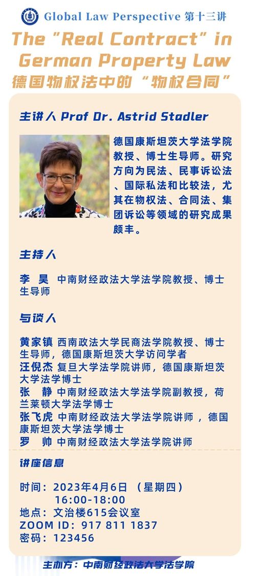德国康斯坦茨大学法学院民法、民事诉讼法、国际私法和比较法教席教授