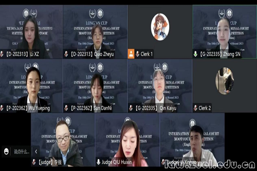 通讯员(黄馨如)2023年3月19日,2023年国际刑事法院模拟法庭竞赛(英文赛)的中国区选拔赛圆满落幕。本次比赛共有来自北京大学、北京师范大学、华东政法大学、武汉大学、吉林大学在内的67支高校代表队注册参加,参赛队数创历史新高。经过激烈的角逐,我校代表队荣获本届竞赛中国区团体三等奖第二名,是我校参加该赛事历史以来的最佳成绩。我校代表队由法学院国际法系胡梦达讲师担任教练,2021级国际法专业研究生谷放担任助理教练,2021级法学专业本科生李星竹、乔哲钰、杨柳以及2022级国际法专业研究生黄馨如、卢洁仪为参赛队员。代表队在备赛和比赛过程中,还得到了法学院国际法学系梁卓讲师的悉心指导和帮助。