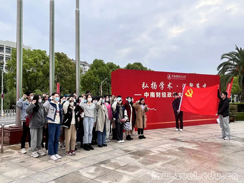 参观结束返校后,同学们于中原楼国旗下宣誓,由法学院张秋蕊老师领誓。