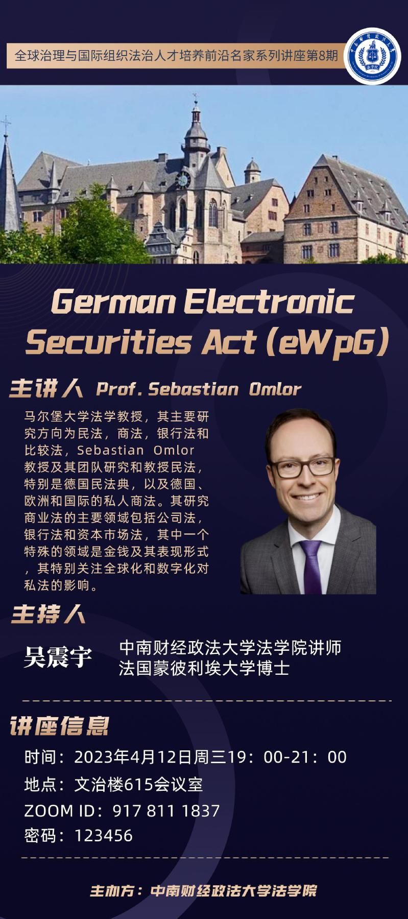 【讲座预告】全球治理与国际组织法治人才培养前沿名家系列讲座第8期:German Electronic Securities Act (eWpG)