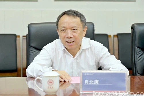 肖北庚院长对胡弘弘院长及陈柏峰院长一行到来表示欢迎,向与会人员介绍了湖南师范大学法学院的概况,并期待后续能与中南大法学院在教育教学、学科发展等方面搭建平台进行深度交流,通过信息共享等形式共同促进双方教育教学与学科高质量发展。