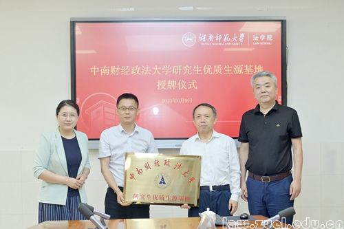 6月9日,研究生院院长胡弘弘,法学院院长陈柏峰,法学院副院长张宝,研究生培育办公室主任张申鹏等一行四人前往湖南师范大学法学院进行走访调研,并举行了“米兰电竞·(中国区)研究生优质生源基地”挂牌仪式。湖南师范大学法学院院长肖北庚,党委书记唐建文,研究生院学位办主任杜继军,法学院副院长周刚志、副院长欧福永、副院长何燕华,研究生办公室王丹等出席会议。