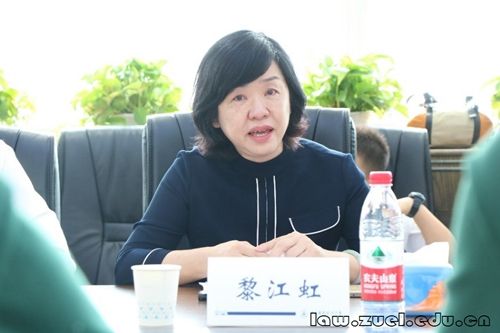 捐赠方代表、2010级经济法学硕士黎贞安从“感恩、感动、感情”三个方面向学院、黎江虹老师表达感谢,表示将牢记“博文明理、厚德济世”的校训,努力为母校争光。同时,黎贞安校友深情回顾了黎江虹老师多年来对大家的关心与指导,希望“江虹财税法奖学金”的设立能成为联系师生之间、校友学校之间的纽带,为更多的法科学子提供发展平台,助力学院发展。