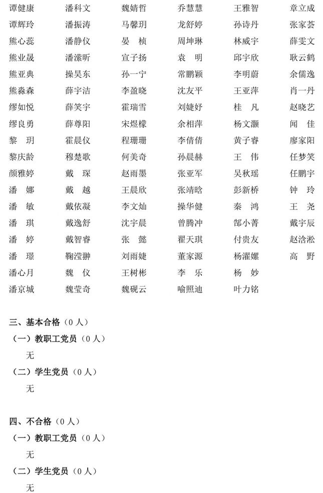 根据学校2023年度党支部组织生活会和民主评议党员工作要求,经党员个人自评、党员互评、民主测评、支部评议、二级党委审定等环节,现将民主评议党员结果公示如下(以姓氏笔画为序):