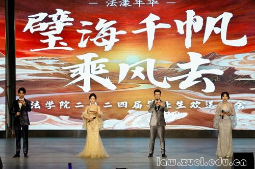 通讯员(徐鑫梅 陈超 李鑫)5月9日晚,“法漾年华之璧海千帆乘风去”法学院2024届毕业生欢送晚会在南湖会堂隆重举行。法学院党委书记张学平,副院长肖志远、江河,党委副书记李司铎、陈金川,理论法学系教师龚春霞,民商法学系教师夏昊晗、陈大创,经济法学系教师陈虹、汪君,国际法学系教师雷益丹,刑事司法学院刑法学系教师姚培培,毕业年级辅导员及党政办、学办、研办的众多老师莅临本次晚会,2024届毕业生、部分学生家长参加。