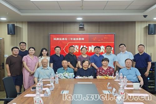 岁月染芳华,桃李绽芬芳。6月24日,法学院民商法系在文治楼7楼会议室举行了“民商法系近三年退休教师荣休座谈会”,对荣休教师赵金龙、孟令志、桂菊平致以崇高敬意和衷心感谢。法学院党委书记张学平、副院长李俊、副院长肖志远等学院领导班子成员和10余位教师代表参加了本次座谈,民商法系系主任陈晓敏担任主持人。
