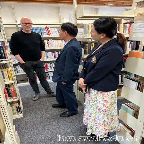 在讨论完文澜学者讲座教授协议后,伯阳教授向出访团介绍了自己所在的德国科隆大学东亚研究所。该研究所目前专注于中、德法律文化研究,并在比较法、法律移植及法律文化等领域取得了较大成果。江河教授表示我院在法制史学科有深厚的学科底蕴和学术影响力。双方未来可以在法制史和法律文化方向开展更为深入的学术交流,为双方的博士研究生和教授进行学术交流提供机会。会后伯阳教授带领出访团参观了研究所的图书,并展示了研究所丰富的藏书。李金镂老师和丁汉韬老师结合自身当前感兴趣的侵权法和国际经济制裁等问题和伯阳教授进行了学术讨论。