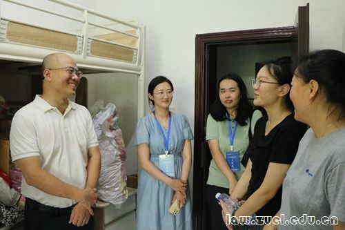 随后,法学院院长、党委副书记陈柏峰,法学院党委书记张学平,副院长张宝,党委副书记李司铎、陈金川及党政办公室、学生工作办公室与研究生培育办公室的老师们来到学生宿舍楼看望2024级新生。院领导们查看了宿舍的生活环境与生活设施,与新生及家长亲切交流,并鼓励新生们珍惜大学时光,祝愿新生们在新的征程中学有所得、学有所长、学有所成。