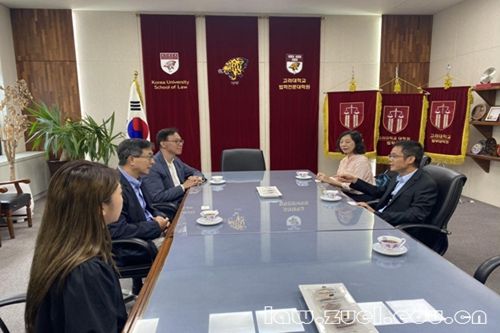 韩国高丽大学法学专门大学院李煌院长、法学院李大熙教授热情接待了访问团。双方就法学教育合作、学术研究交流、师生互访等方面进行了深入的探讨。陈柏峰教授首先介绍了我院的办学历史、师资力量、优势学科和学生培养情况,并表示希望与高丽大学开展深入的合作。李煌院长对我校法学院的办学水平和成就表示高度赞赏,也同样表达了与我校建立长期合作关系的强烈意愿。