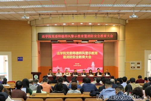 为大力弘扬教育家精神,推动师德师风警示教育走深走实,增强教职工消防安全意识和消防安全能力,11月14日下午,法学院党委在文潭楼一楼报告厅召开师德师风警示教育暨消防安全教育大会。法学院、知识产权学院(知识产权研究中心)、法律硕士教育中心、国家治理学院党政领导及全体教职工参加会议。会议由法学院院长、国家治理学院院长、法学院党委副书记陈柏峰主持。