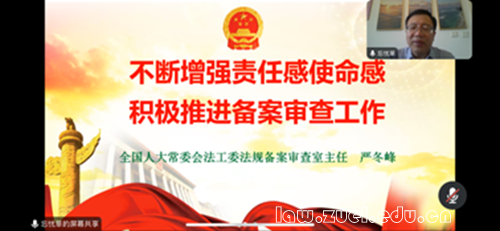 在此次研究生课堂直接连线国家立法机关专家的现场讲学中,严冬峰主任以其深厚的学术底蕴和丰富的实践经验,用鲜活案例阐释了备案审查制度的实际应用,为师生们勾勒出具有中国特色备案审查的理论实践图景。