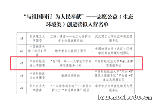 我院VAL法律志愿服务团入选“与祖国同行 为人民奉献”——志愿公益(生态环境类)创造营入营名单