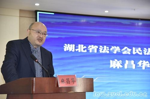 随后,麻昌华教授作为湖北省法学会民法学研究会第九届理事会新任会长进行表态讲话。他表示,在湖北省法学会的支持和指导下,新一届理事会同仁将共同努力,为开创湖北省民法学研究新局面和推动法治湖北建设作出更大贡献。