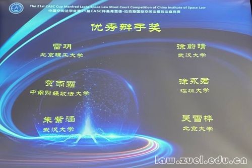 12月7日至8日,由外交部条法司指导,中国空间法学会主办,海南大学协办的第21届CASC杯曼弗雷德·拉克斯国际空间法模拟法庭竞赛在海口圆满举办。本次竞赛吸引了来自北京大学、北京航空航天大学、中国政法大学、武汉大学等共计31所高校参赛。经激烈角逐,我院代表队在竞赛中荣获全国四强,贺雨霜同学荣获优秀辩手奖。