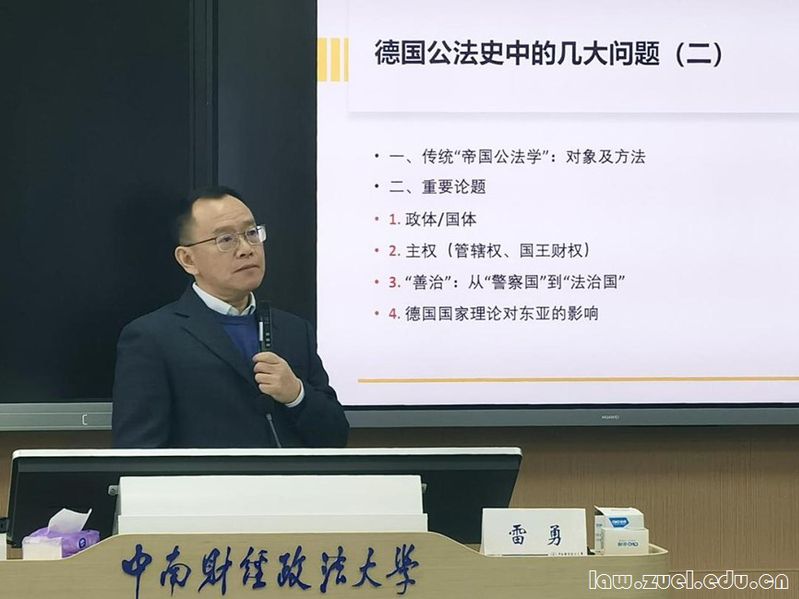 雷勇教授围绕德国公法史展开深入讲解。他围绕着德国公法发展的重要历史节点,1495年的帝国改革以及德国公法发展史上的多个重要历史时期,从历史维度对德国公法的研究对象、形成要素、研究偏好等问题作出了清晰的描绘。