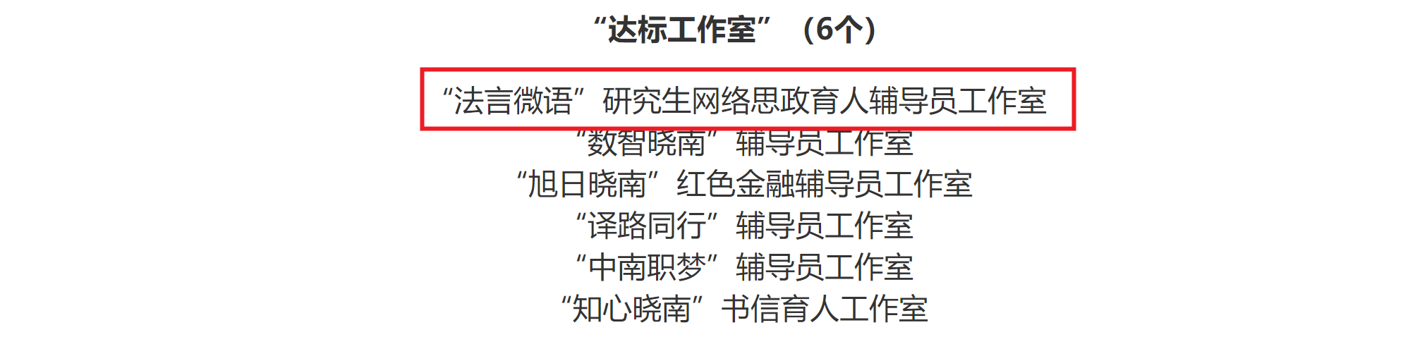 近日,学校举行了2024年度辅导员工作室考核。法学院年初获得校第二批辅导员工作室立项的“圆梦晓南”本科生生涯发展工作室、“法言微语”研究生网络思政育人辅导员工作室均通过答辩验收,“圆梦晓南”生涯发展工作室荣获“示范工作室”称号。
