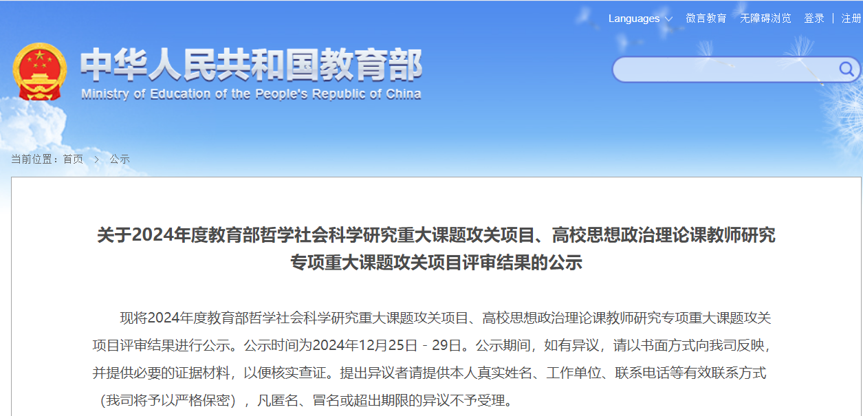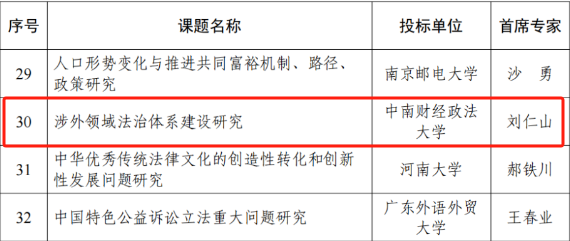 通讯员(孙艺)2024年12月25日,教育部社会科学司公示了2024年教育部哲学社会科学研究重大课题攻关项目评审结果,来自全国的26所高校共43个项目获评,其中我校刘仁山教授《涉外领域法治体系建设研究》项目入选。这一成果标志着我校在涉外法治研究领域的深厚积淀与强大实力得到了充分肯定,也为我国涉外法治体系建设的深入推进注入了新的动力。