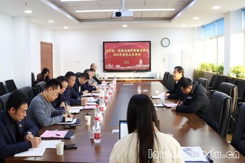 按照学校党委工作统一部署,2025年1月13日下午,法学院和国家治理学院领导班子在文治615会议室召开2024年度民主生活会。校党委书记侯振发与会指导,党委办公室、学校办公室主任兼督察办公室主任刘建明参加会议。法学院党委书记高碧峰主持会议。