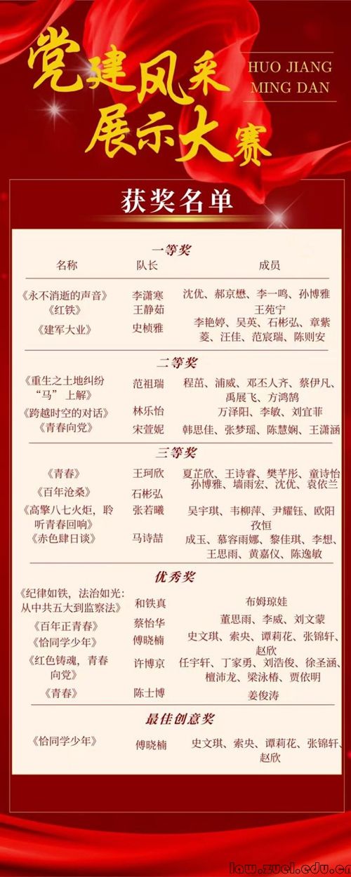 本次活动是法学院构建“大思政”育人格局的生动实践,通过创新推动党建与专业教育、美育教育深度融合的实践路径,引导新时代青年学生在沉浸式创作中感悟思想伟力,在情景化演绎中筑牢法治信仰,激励青年在互学互鉴中增进交流,教育引导广大青年坚定马克思主义信仰。据悉,法学院将深入实施“党建育人质量提升工程”,通过开展微党课设计大赛、党建主题演讲比赛等系列品牌活动,着力培养德法兼修的新时代法治人才。