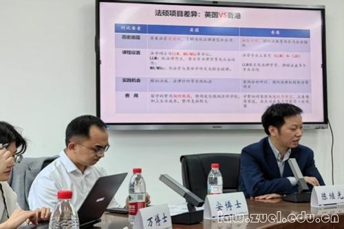 随后,陈老师深入剖析了海外法学的发展趋势。结合我院学生的留学目标,陈老师重点介绍了英国和香港的留学情况。在对比英国和香港法硕项目时,陈老师指出,英国作为英美法系的发源地,能让学生深入了解传统法律的演变与应用,但其法系与国内存在差异;香港则融合了中西法律体系,其国际法教育体系与全球接轨。英国的法学硕士学位包括LLM、MA/MSc等,而香港主要有LLM和JD学位。