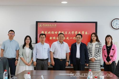 通讯员(盛欣怡 方一飞 靳瑞颖)4月21日下午,甘肃政法大学党委常委、副校长史玉成,民商经济法学院副院长巴于茜,环境法学院副教授王晶一行来访我院,双方在文治楼615会议室举行座谈。法学院党委书记高碧峰,副院长张宝,党政办公室主任司志莲,研究生培育办公室主任张申鹏出席本次会议。会议由高碧峰主持。