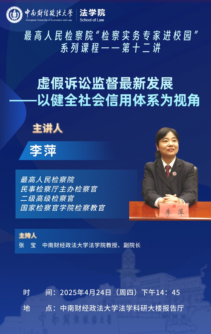 讲座主题:虚假诉讼监督最新发展——以健全社会信用体系为视角