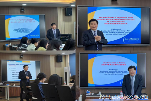 4月18日,我校涉外法治人才协同培养创新基地、法学院共同主办的“涉外法治人才培养创新课程”第二期——“比较经济法”专题课程顺利结课。本期课程特邀法国艾克斯—马赛大学(Aix-Marseille Université)金邦贵教授授课。法学院经济法学系主任侯卓教授、理论法学系龚春霞副教授、国际法学系罗洁副教授、民商法学系陈大创老师、李金镂老师、知识产权学院何蓉老师共同参与本期活动。法学院研究生踊跃报名参加。