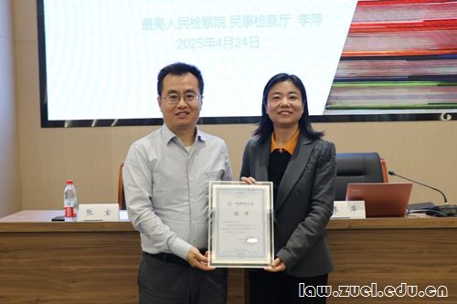 讲座结束后,张宝副院长为李萍检察官颁发授课证书。