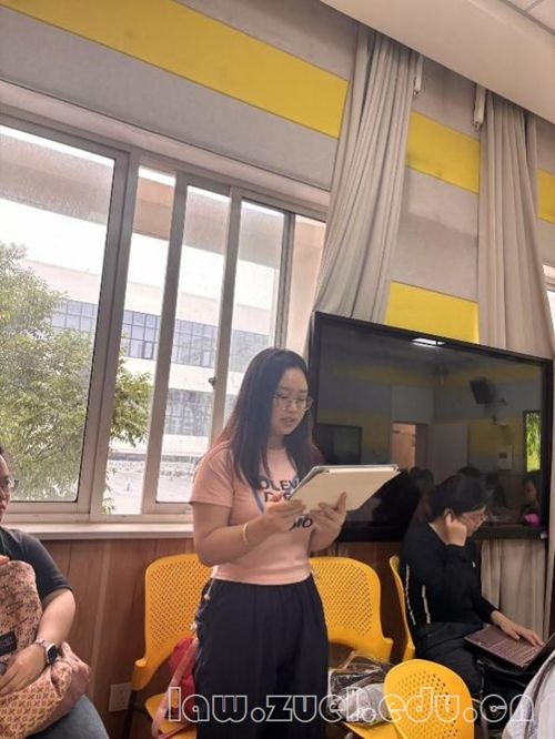 2023级经济法专业硕士研究生党员杨水亮同学,分享了深入贯彻中央八项规定精神学习教育心得。在学习过程中,杨水亮同学重点把握了中央八项规定精神的实践要求,并结合自身身份从厉行勤俭节约、严谨治学态度和筑牢纪律意识三个方面提出了具体落实措施。她表示,作为入党积极分子,必须从思想上树立纪律观念,在行动中体现责任担当,以实际行动拉近党与人民群众的距离,展现新时代青年的政治觉悟。
