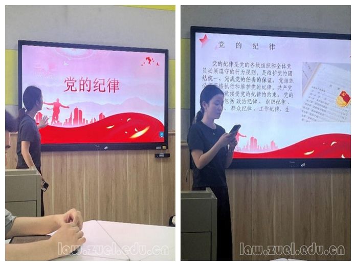 在党课学习环节,本科生金凯灵同学分享了关于党的纪律相关知识。习近平总书记深刻阐述了党的纪律建设的重大意义和具体要求,为新时代全面从严治党提供了明确的指引。纪律是管党治党的“戒尺”,要将纪律建设摆在突出位置,严格执行党规党纪,增强纪律意识,以严明纪律推动全面从严治党,确保党团结一心。