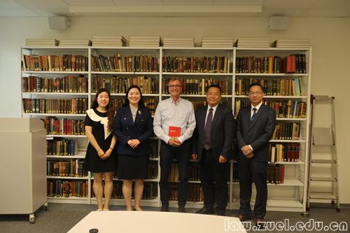 高碧峰一行在与Omlor教授座谈期间,Omlor教授回顾了两校合作取得的成果,期待与我校学者开展合作研究,共同指导博士研究生,并向我院赠送书籍。